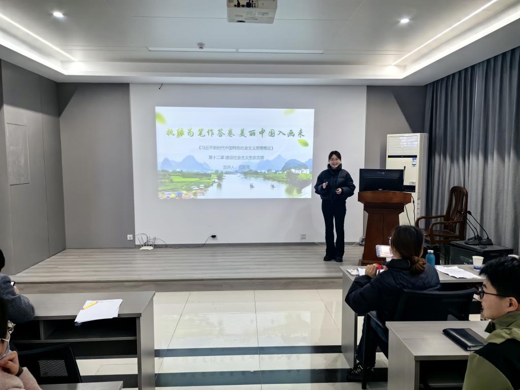 宣讲团三位成员结合专业特长,分别从“追光科学家精神”“执手为绿作答卷,美丽中国入画来”“传承红色精神,争做青年先锋”等方面,通过视频、图片、文字等形式,展现新时代科学家精神的丰富内涵;以马鞍山薛家洼生态治理为例,引出深入践行习近平生态文明思想,在绿色低碳高质量发展中牢记嘱托、勇当标杆;从延安精神、井冈山精神等党和国家宝贵精神财富中汲取新时代青年奋进的智慧和力量。