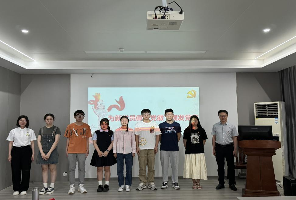 领导为新发展党员佩戴党员徽章并颁发党章。