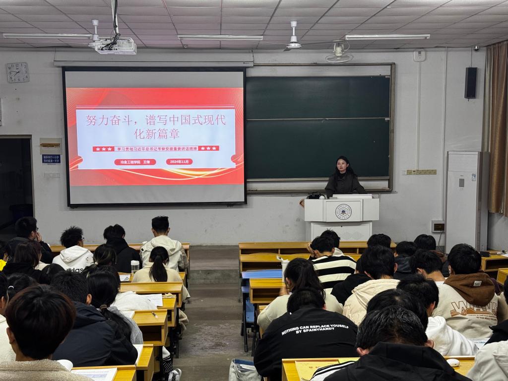 为深入学习贯彻习近平总书记考察安徽重要讲话精神,11月25日,校第五届辅导员宣讲团成员王倩开展学习习近平总书记考察安徽重要讲话精神宣讲,咪咕视频 2024级新生团员参加了此次宣讲。