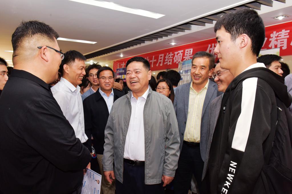在企业招聘展台前,陆林详细询问各单位公司情况与用人需求,了解毕业生就业意向和应聘进展,倾听企业对学校人才培养和就业工作的意见建议。陆林指出,当前正值秋季求职关键期,要把学习宣传贯彻党的二十大精神,同做好毕业生就业创业工作紧密结合起来,认真贯彻落实党中央、国务院有关就业创业的决策部署,根据国家和安徽省战略布局,主动对接经济社会和行业产业发展需要,强化就业创业教育的针对性和实效性。大力开拓市场化专业化就业渠道,为毕业生挖掘更多岗位资源、提供更多就业信息,确保取得让社会、家庭和毕业生满意的成效。