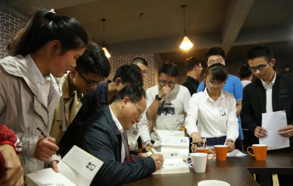 茶座开始前,刘新跃还向同学们签名赠书,并与参会师生一起参观了“书香工大·心灵悦读”读书节活动评选出的学生优秀书法、篆刻作品和阅读摄影展,观看了读书节活动总结视频。