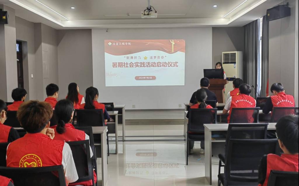 于冶金楼南302会议室举行“挺膺担当·逐梦青春”2024年大学生暑期社会实践启动仪式。院党委书记路壮志、院团委书记张夏及各社会实践指导教师代表、社会实践队员代表参加启动仪式。