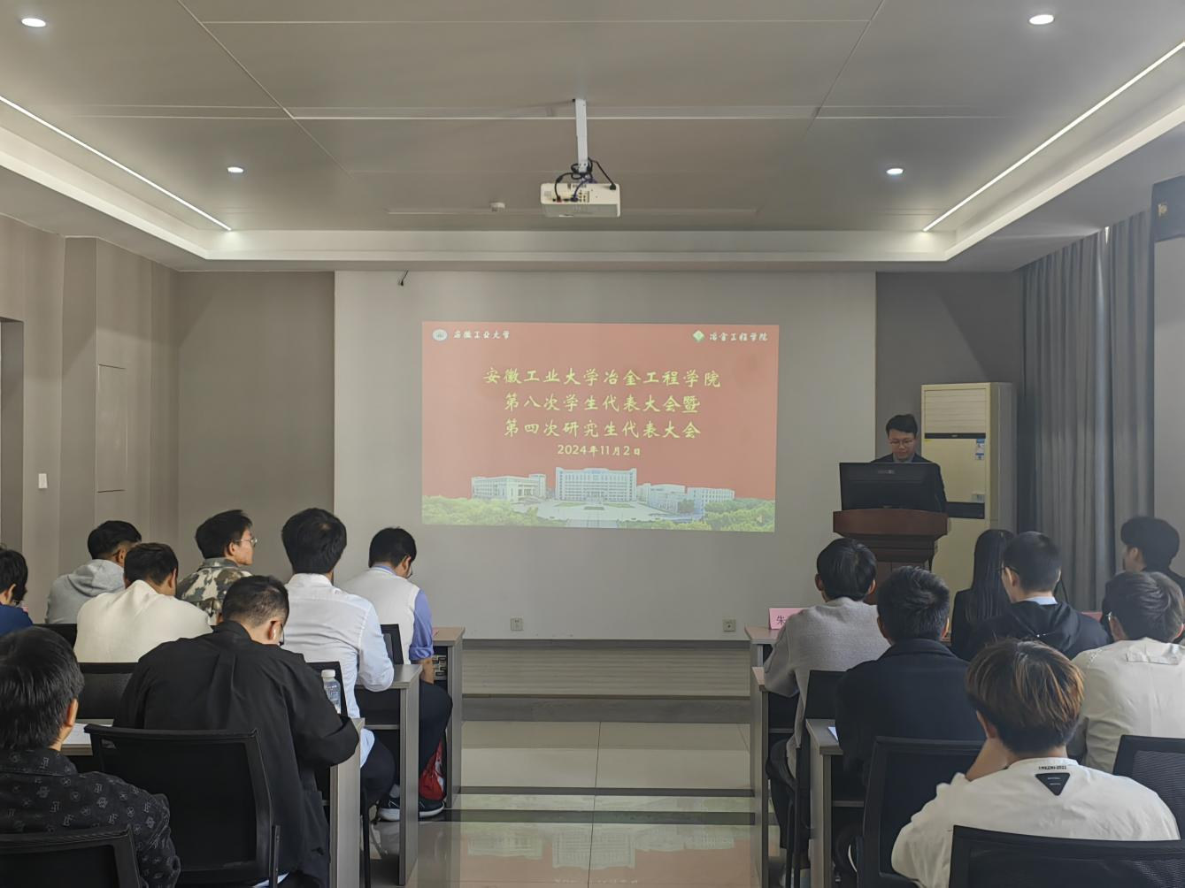 第八次学生代表大会、第四次研究生代表大会于冶金楼南302召开。院团委副书记高倩莹及各年级学生代表参加会议。