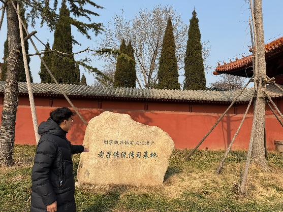 在安徽涡阳县,实践队员们来到了老子传说传习基地实践队员们参观游览了涡阳天静宫近距离感受宫内与老子相关的文物和典籍通过讲解员的详细介绍,实践队员们感受着道教文化的深邃底蕴,同时对老子思想有了更深刻理解和感悟。