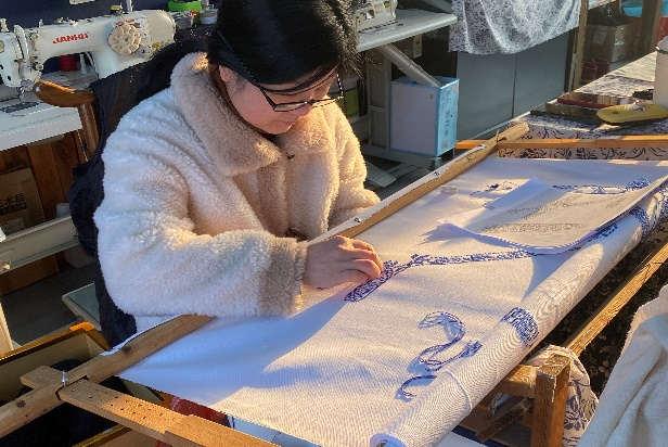 在安徽望江县实践队员来到望江挑花保护与传承基地,一幅幅清新古朴的挑花艺术作品映入眼帘令人叹为观止望江挑花以青白相间的色调、清晰透白的质地,以及表里如一的品质,彰显了其清正、清廉的文化内涵使队员们感受这项非遗技艺所承载的历史重量与文化价值。