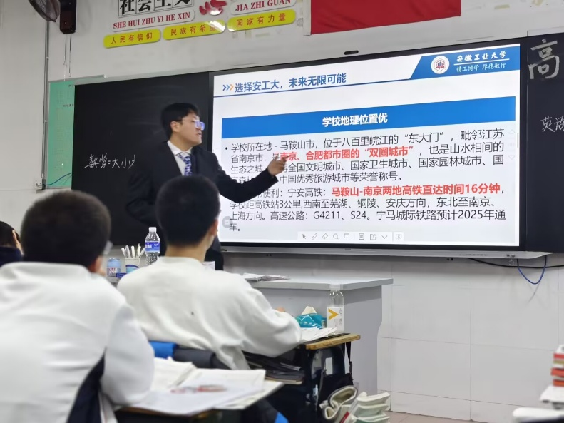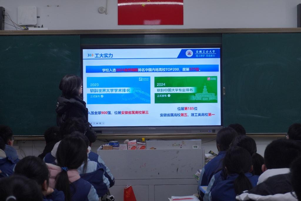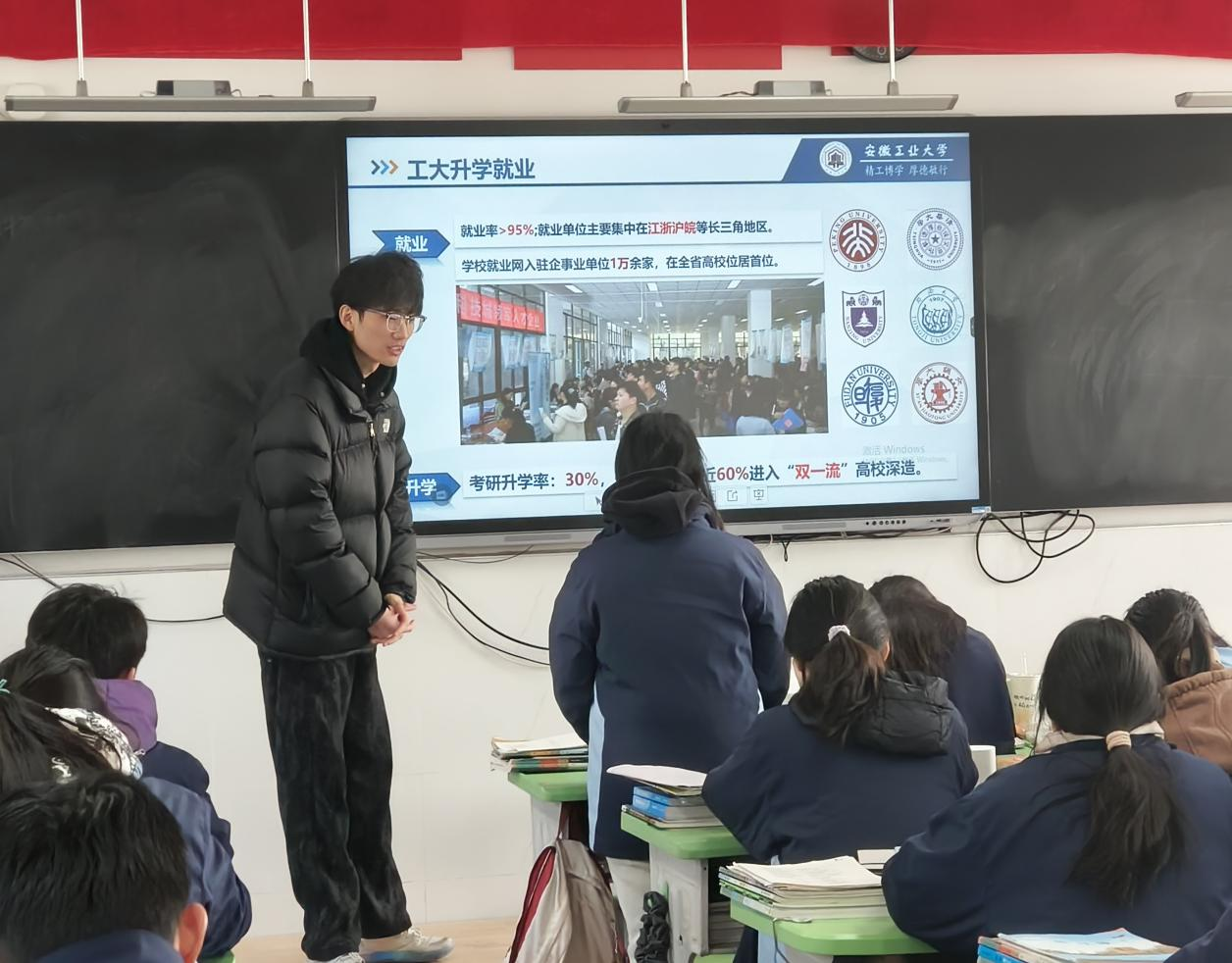 1月20日,我“我把工大带回家乡”百支爱校荣校实践团巢湖分队赴巢湖第四中学进行宣讲宣讲团成员沐宛月同学通过生动的讲和互动环节,详细介绍了我校发展历程、特色专业、就业情况,激发了学弟学妹们的浓厚兴趣。