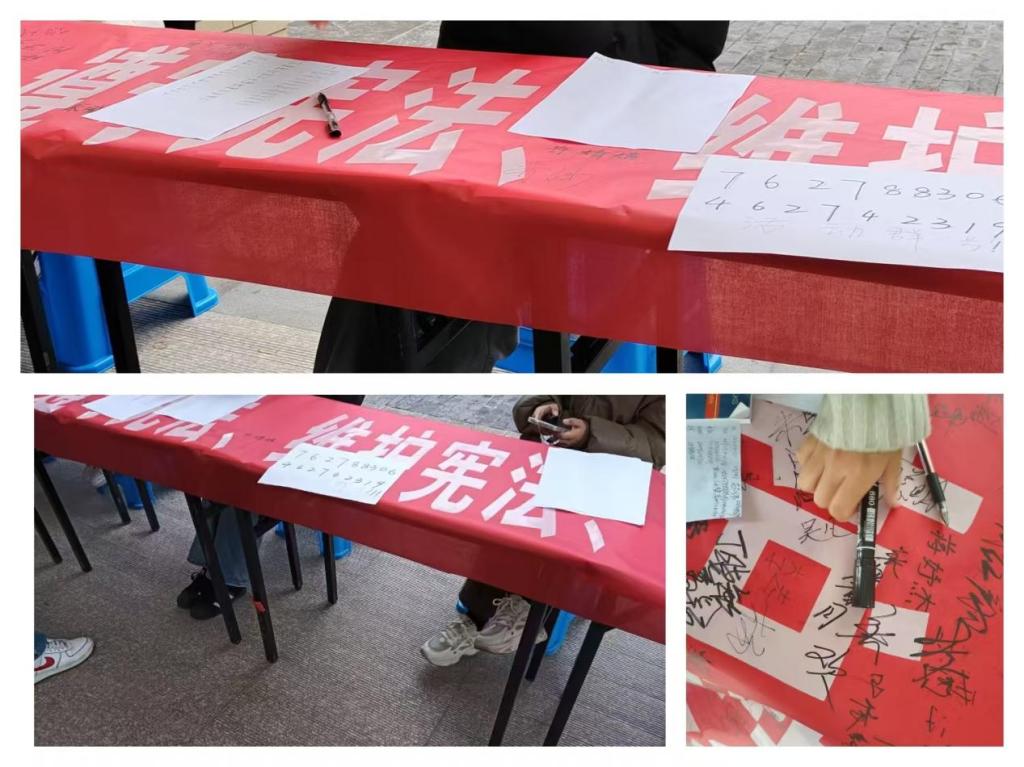 开展了“宪法宣传周”主题横幅征集活动。学生们积极参与,设计出多条富有创意和正能量的横幅标语,如“尊崇宪法,维护宪法权威”、“宪法在心中,法治在行动”等。吸引了众多师生驻足观看,进一步加深了大家对宪法的认识。