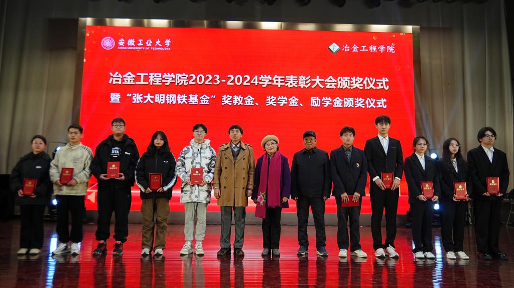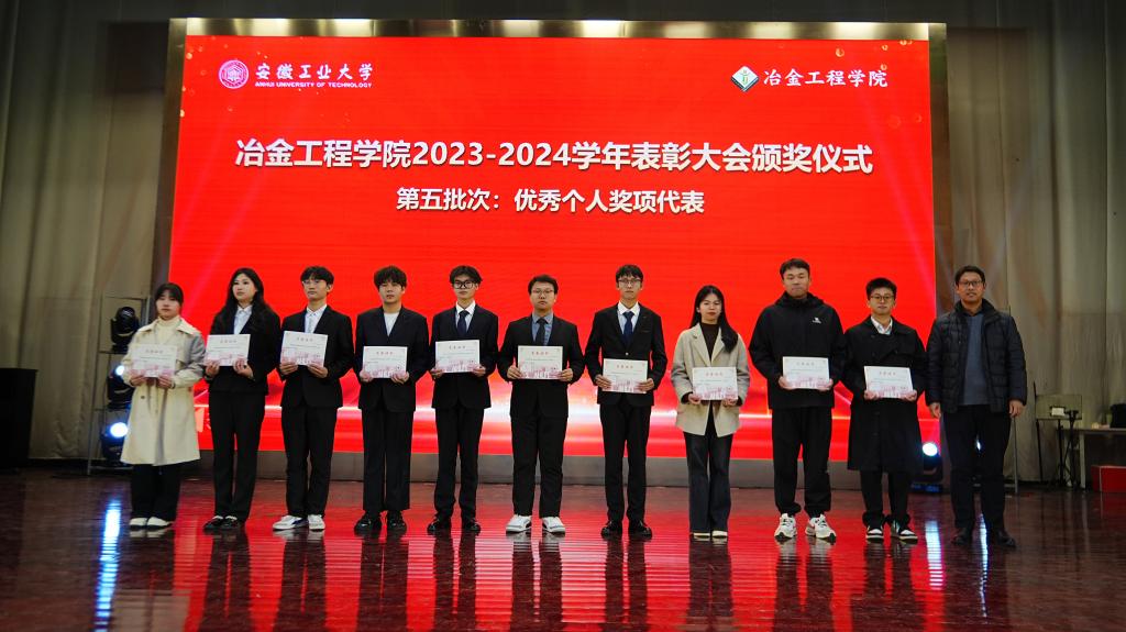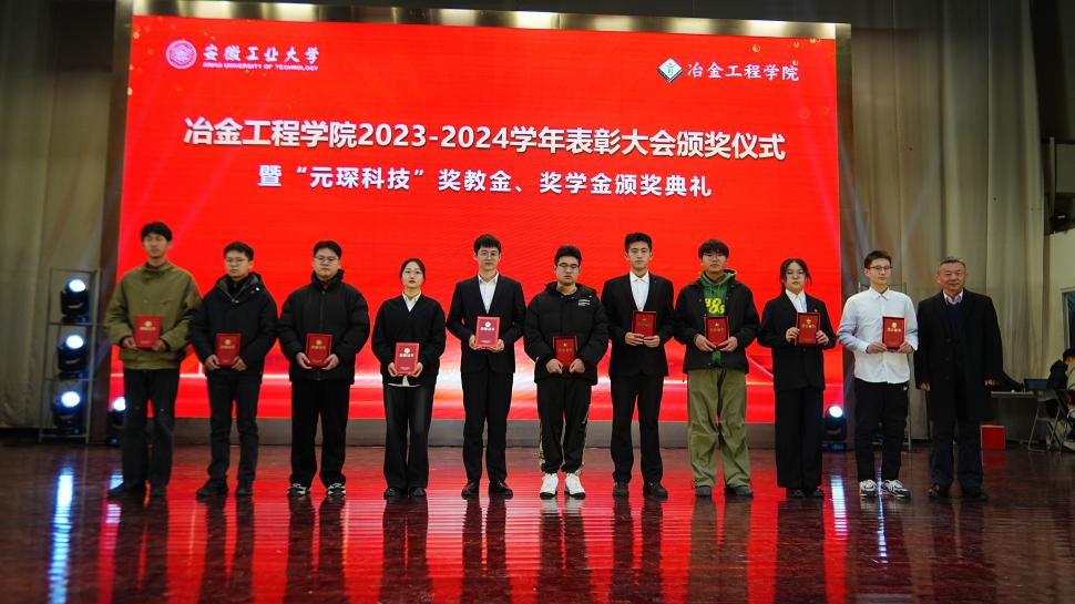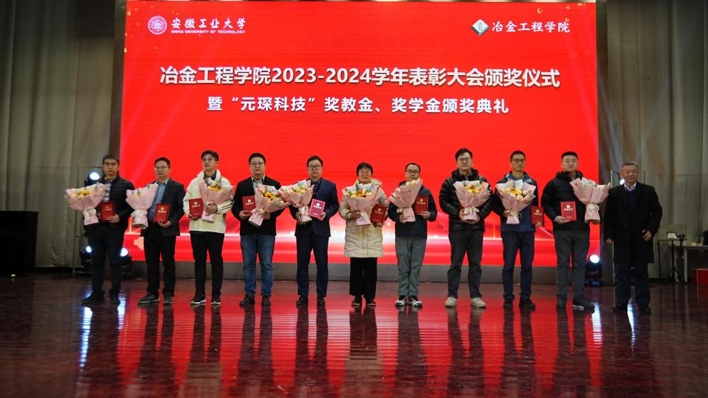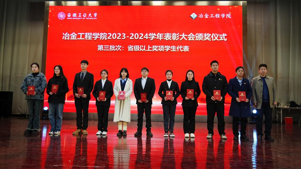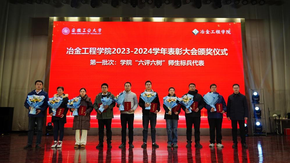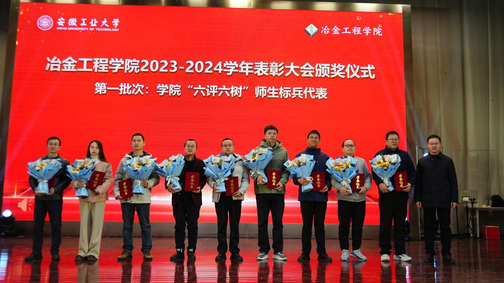 表彰通报,优秀班主任代表高翔鹏老师、先进集体代表冶215班黄嘉奇同学、先进个人代表型215班张凤举同学依次代表受表彰集体和个人发言。大会分批次为教书育人标兵、科技创新标兵、管理服务标兵、立德树人标兵、优秀班主任、张大明奖教金、元琛奖教金、优秀班级、文明宿舍、科技竞赛获奖团队、优秀学生干部、三好学生、优秀学生奖学金等集体和个人颁发了荣誉证书,学生代表为获奖老师献上了鲜花。