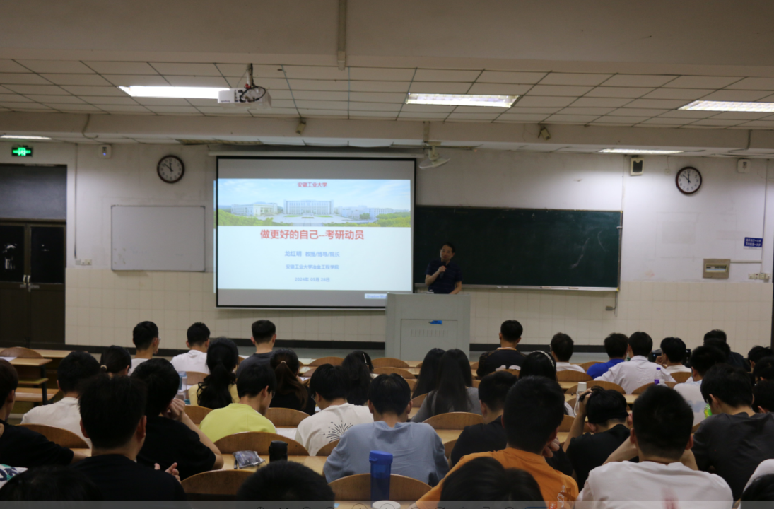 优秀研究生展示”、“科学度过考研时光”、“遇见更优秀的自己”三个方面展开,通过讲述自己和所带学生的故事,他指出在成长的过程中要不断学习、不断进步,激励同学们坚定信念、合理规划,养成良好的学习生活习惯,保持积极的心态,努力拼搏,追求卓越,坚持到底!
