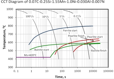 图3 超低温钢的理论计算CCT曲线