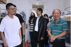韦良德一行与各个寝室的同学们都进行了亲切交流,通过了解新生们的家乡拉近了与同学们的距离,询问各位同学的专业方向并给予了学业上的帮助,并希望新同学们能一直保持初心,坚持梦想。韦良德强调在大学生活中,寝室就是自己的另一个家,需要每一位同学共同出力创造美好寝室环境,在学生和生活中,班主任、辅导员以及班助是每位同学背后的坚实力量,遇到困难可以寻求帮助。