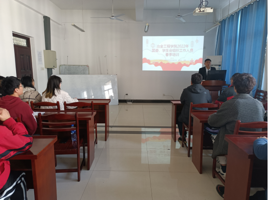 于秀山校区冶金楼南302会议室组织团委学生会工作人员春季培训,院党委副书记、副院长杨建专题传达学习2022年全国两会精神。咪咕视频