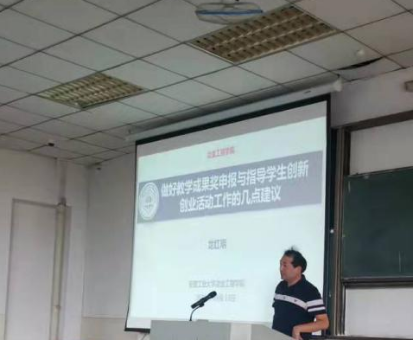 教师做了题为《做好教学成果奖申报与指导学生创新创业活动工作的几点建议》的教师业务培训讲座。他首先介绍了教学成果奖的几种类型,如何做好各类教学成果的整理提炼以及申报的注意事项。然后,针对指导学生创新创业活动工作的常见问题以及如何做好指导工作做了详细的讲解与案例分析。
