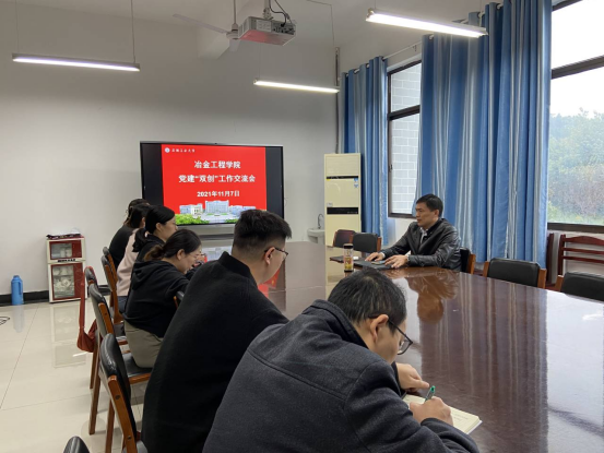 杨建勉励大家结合学生党支部实际,积极申报校级党建示范创建和质量创优项目,与会人员就冶金工程研究生党支部申报全国党建工作样板党支部献言献策。
