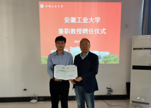 为其举行了安徽工业大学兼职教授聘任仪式,杨教授欣然接受聘任,并表示能够受到安徽工业大学的聘任自己感到很荣幸,愿意为安徽工业大学的发展奉献自己的微薄之力。