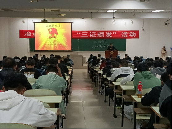 团委于佳山校区第三教学楼南203教室举办2021级新生团员“三证”颁发仪式。院团委副书记张夏、2021级辅导员李露露、团委学生会干部及新生代表参加了此次活动。