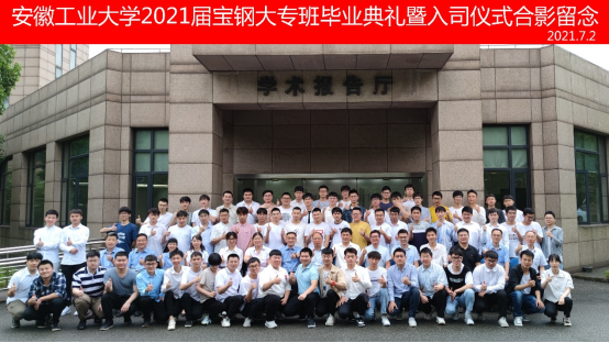 7月2日下午,安徽工业大学2021届宝钢大专班学生毕业典礼暨入司仪式在宝武人才开发院学术报告厅举行。宝钢股份有限公司人力资源部(党委组织部)副部长李正强,咪咕视频