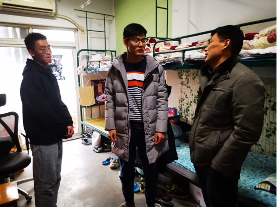 杨建一行对学生宿舍进行挨个检查,遇到尚未离校的同学,杨建耐心询问学生离校时间、返乡交通方式等信息,提醒大家离校时锁好门窗,整理好随身物品,切断宿舍电源,路途中做好个人防护,增强安全意识。