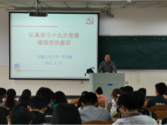 韦良德作了题为“认真学习十九大党章增强党员意识”专题讲座。主要围绕十九大党章的修改,以及为何修改,如何严格践行新党章,进行了深入浅出的讲解。中国共产党提出了一系列治国理政的新理念新思想新战略,并在实践中得到了检验,所以,将这些实践经验在十九大上升为重大理论观点和重大战略思想,并写入党章,成为全党的指导思想,成为新形势下马克思主义中国化的最新成果,为中国的进一步发展提供强有力的理论支持。