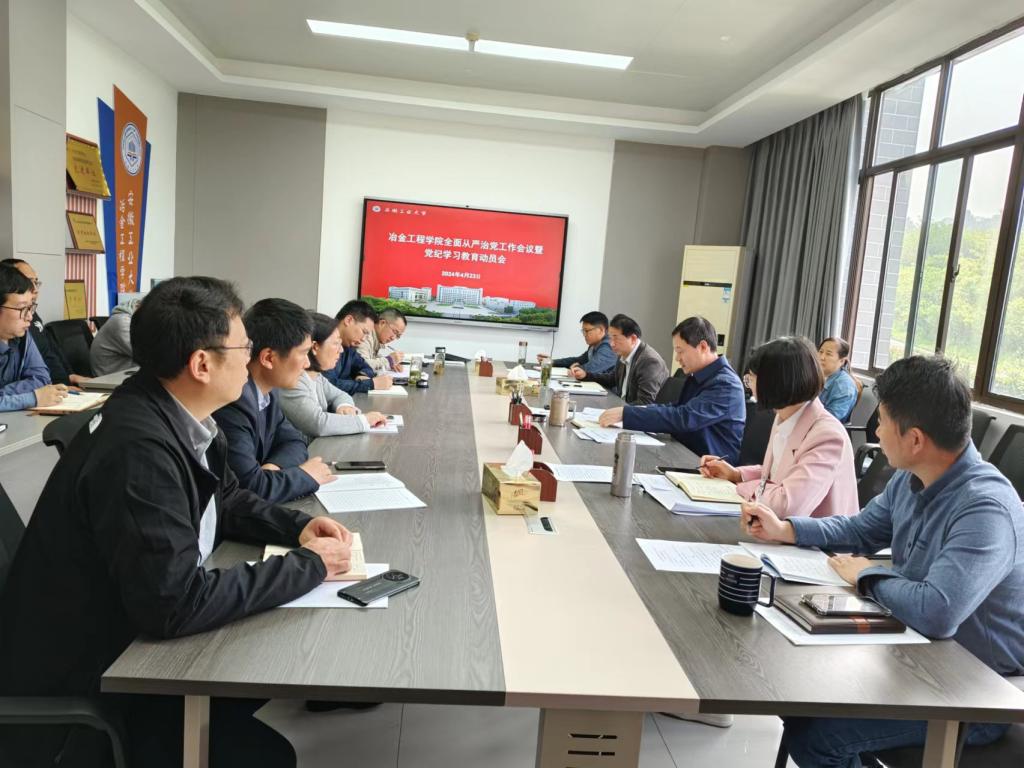 于秀山校区冶金楼南324会议室召开了2024年全面从严治党工作会议暨党纪学习教育动员会。院领导、党委委员、纪委委员、院长助理、办公室主任、党委秘书、党支部书记、系主任和全体辅导员参加了此次会议。会议由院党委书记路壮志主持。