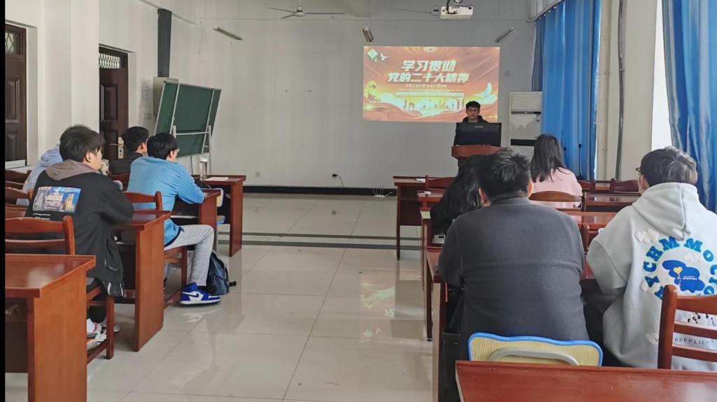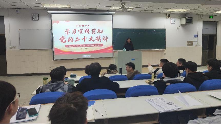 在冶金楼南302会议室开展“学习贯彻落实党的二十大精神”宣讲活动。院党委副书记杨建、团委书记吴巍、团委副书记张夏以及咪咕视频