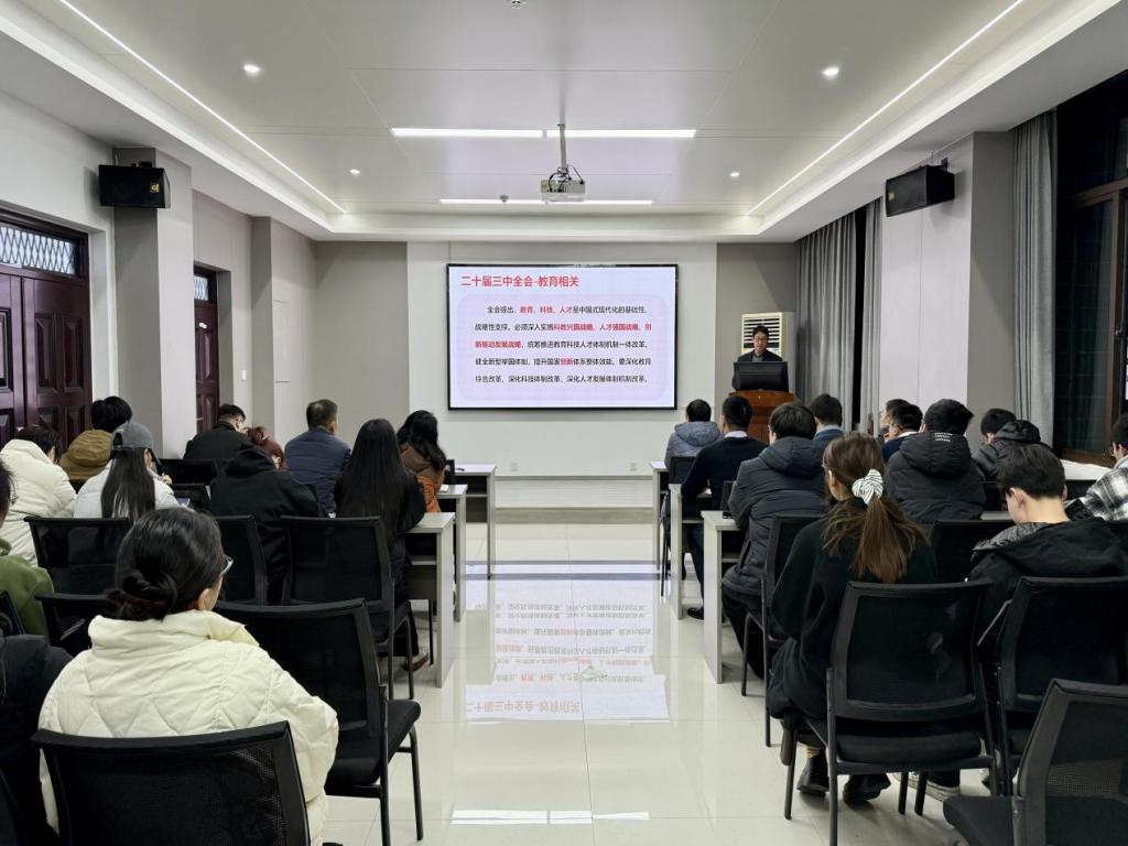 专业特点、师资队伍、科研概况等方面讲解了如何贯彻落实党的二十届三中全会精神。赵卓强调,全体党员同志要深刻领悟全会精神的实质和内涵,要结合自身角色找准切入点和着力点,自觉把思想和行动统一起来,不断提高自身政治素养、专业技能,努力为建设社会主义现代化强国贡献力量。
