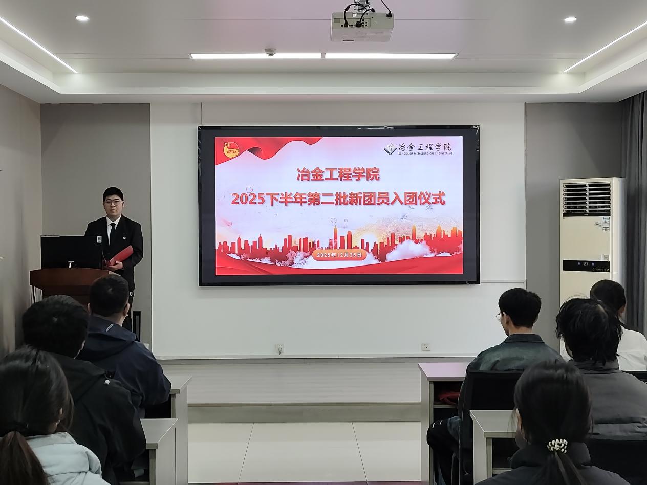 在冶金楼南302教室举行2025年下半年第二批次新团员入团宣誓仪式。院团委书记张夏、咪咕视频