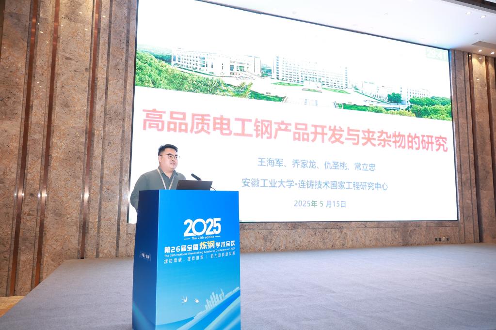 咪咕视频app 常立忠教授、夏云进教授、王海军副教授、张超杰副教授、从俊强博士和储建华博士等一行6人受邀参加此次学术盛会。王海军副教授作了题为“高品质电工钢产品开发与夹杂物的研究”的大会报告,储建华博士作了题为“高锰钢液与MgO基耐材相互作用行为及洁净度控制研究”分会场报告,详细介绍了在无取向硅钢和高强塑性高锰钢领域的最新研究进展,研究成果引发现场广泛讨论和深度交流,获得与会专家高度评价,提升了我校在高端钢种开发领域的学术影响力。
