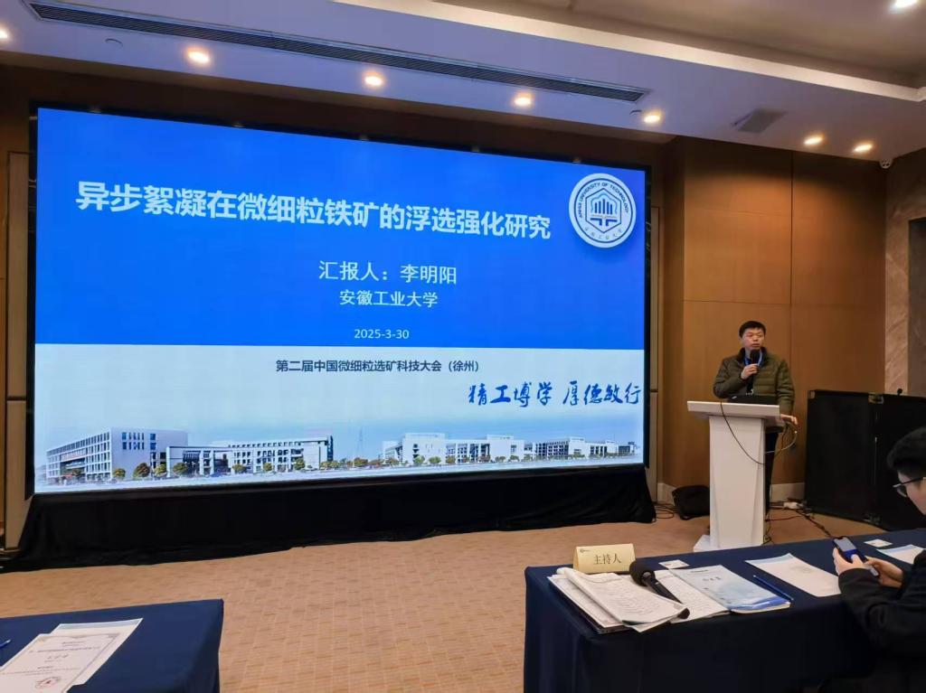 咪咕视频app 资源加工与循环利用系李明阳副教授参会,并在“微细粒难选矿物选矿药剂技术与应用”论坛做了题为“异步絮凝在微细粒铁矿的浮选强化研究”的邀请报告,介绍了课题组近年来在复杂难选铁矿石综合利用方面的研究进展,引起参会专家学者的广泛交流与讨论,提升了我校在微细粒选矿领域的影响力。(撰稿:吕宁宁  审核:罗梦婷 余正伟 赵卓)
