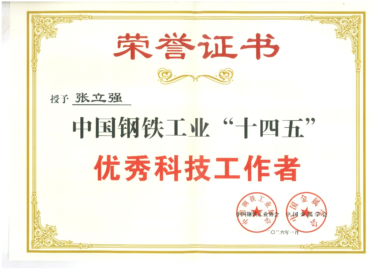 张立强教授被授予中国钢铁工业“十四五”优秀科技工作者荣誉称号。