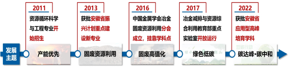 资源循环科学与工程专业于2011年9月份开始招生,本专业是针对一次资源日渐匮乏、二次资源丰富但利用率低的现状,为满足国家节能减排、低碳经济及循环经济等战略性新兴产业对高素质人才迫切需求而设立的新兴专业。是国家鼓励发展的重点学科和安徽省重点建设的新专业,也是安徽省唯一一个面向工业固废资源再生循环利用的专业。