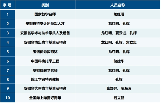 本专业培养的学生在全国大学生“挑战杯”取得优异成绩,获全国一等奖和金奖各1项;专业获国家级教学成果二等奖、安徽省教学成果奖特等奖、一等奖和二等奖各1项;获安徽省科技进步二等奖、三等奖各2项,冶金科学技术三等奖4项。